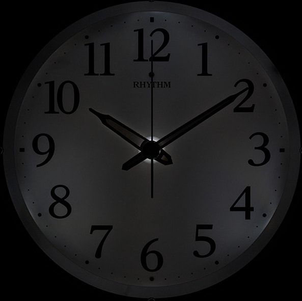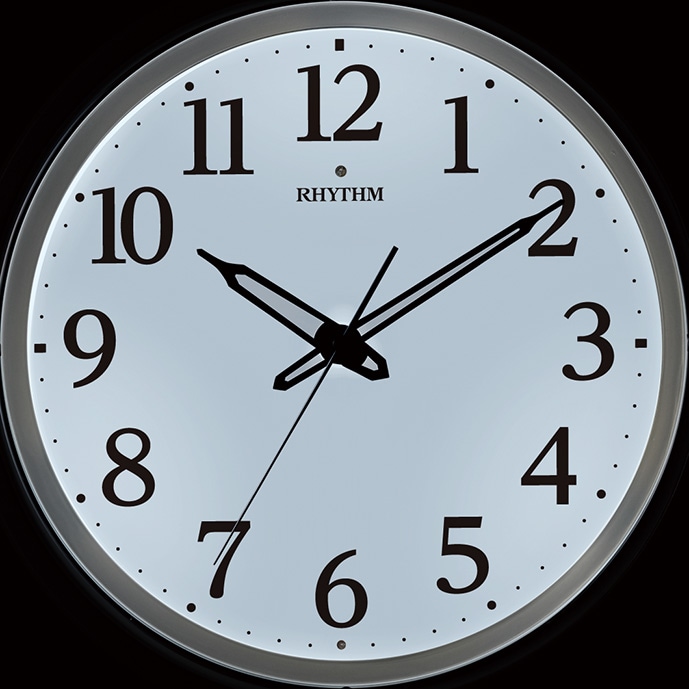 | 仕様 | 電波掛時計 暗所自動点灯機能付 文字板と時分針がそれぞれ発光 明るさを調節できる調光機能 明るさ無段階調節式 音の静かな連続秒針 電池交換お知らせ機能 |