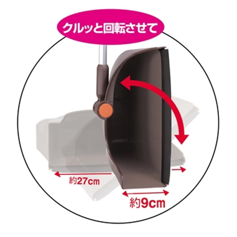 - 本体を回転させると掃き掃除も溝掃除も一度にできる、テラモト独自の機能チリトリ。
