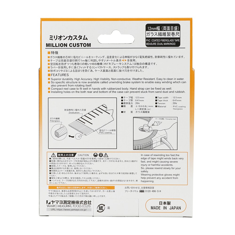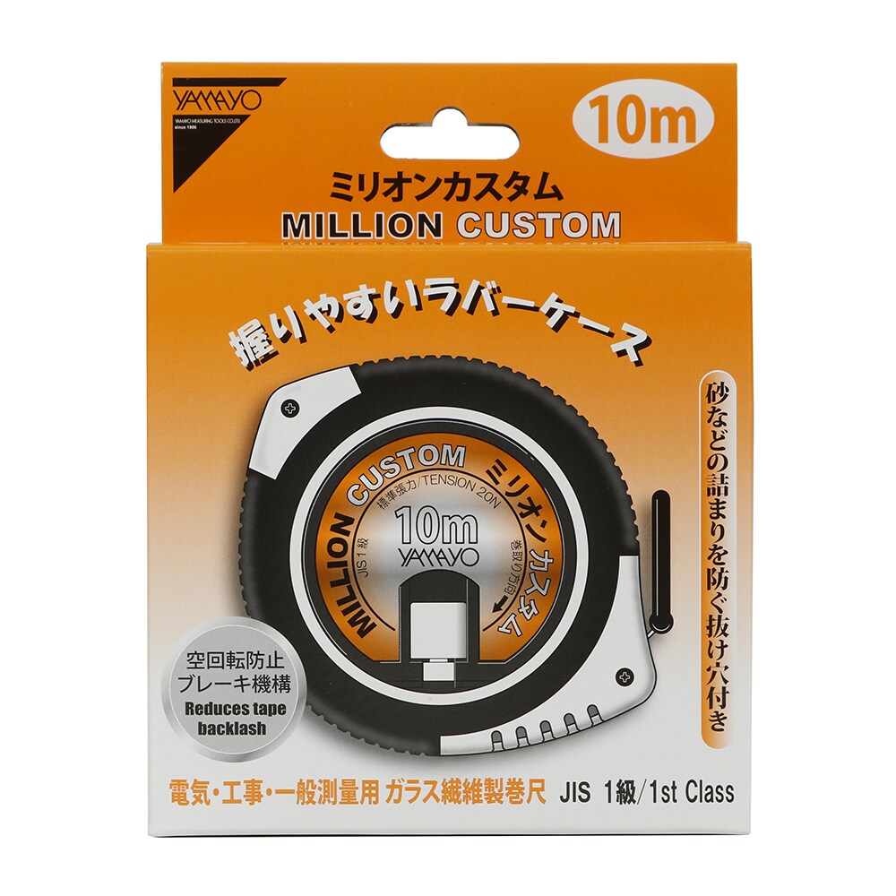 ヤマヨ測定機 ミリオンカスタムカスタム ガラス繊維製巻尺 10m MCT10