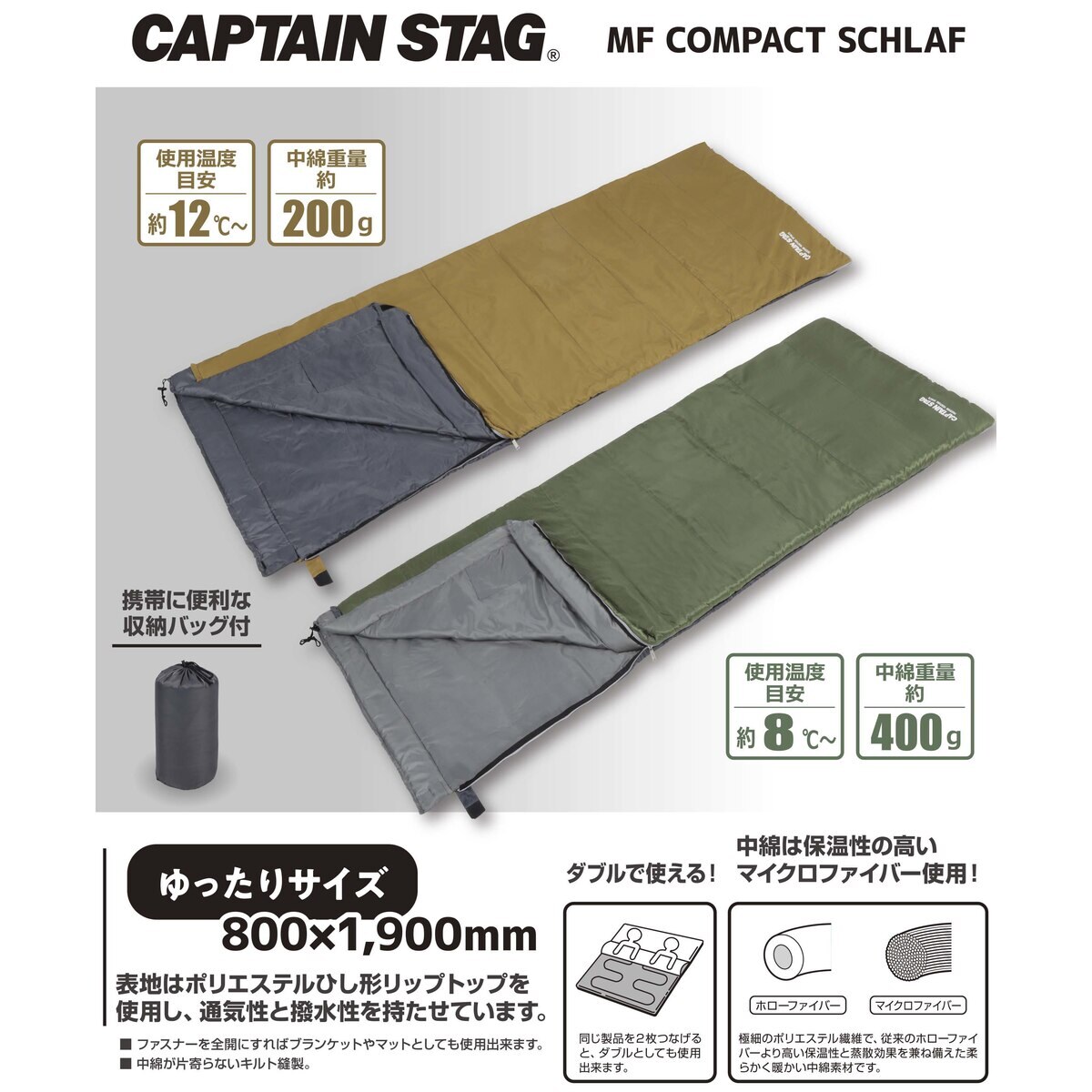 キャプテンスタッグ MFコンパクトシュラフ200 ブラウン UB-37関連キーワード:アウトドア レジャー キャンプ 寝袋 シュラフ