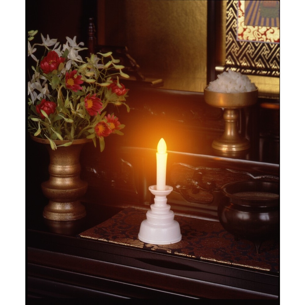 - 燭台付タイプで、そのまま仏壇にセットできます。お墓参りにも携帯しやすく、風にも安心です。