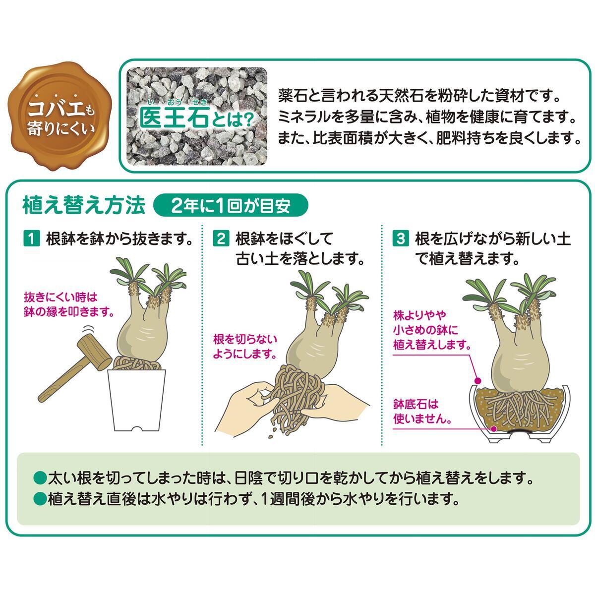 - 微塵抜きで排水性に優れ、しっかりとした株に育てます。