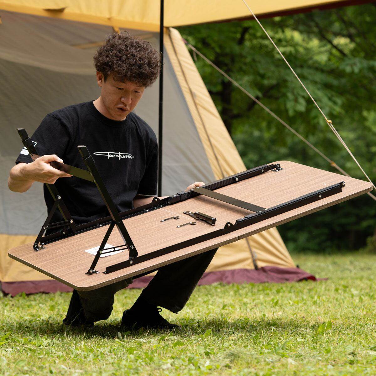 - 材質:天板の材質/PET(表面加工/メラミン樹脂コーティング)、構造部材/アルミニウム合金(表面加工/アルマイト)